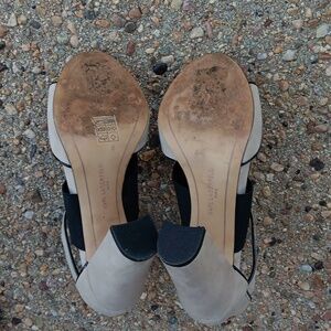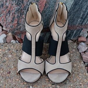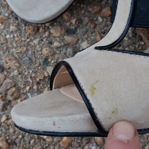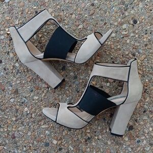 Karl Lagerfeld Rosalie cream suede & black heeled sandals womens 6