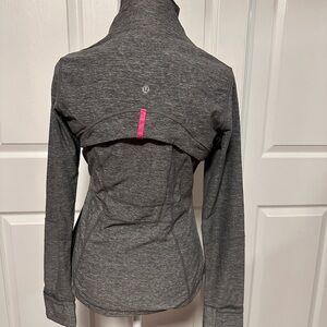 Excellent used like new condition, Lululemon Define Jacket *Cuffins in gray featuring vibrant pink accents Zippers, size 8 with size dot confirmed