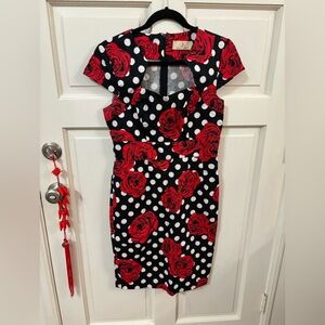 Vixen by micheline Pitt white and black polka dot wiggle dress