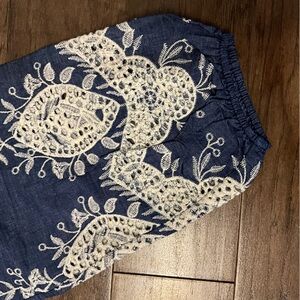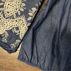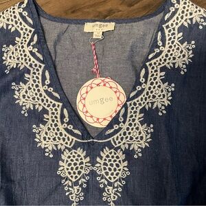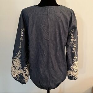 NWT Umgee Embroidered Chambray Top Medium Balloon Sleeve
