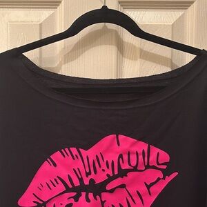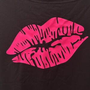 Women’s Begonia K Black Long-Sleeve Novelty Tee with Hot Pink Lips Graphic