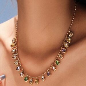Bohemian rainbow natural stone necklace in 18k gold plated hardware