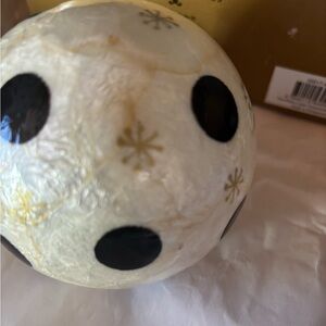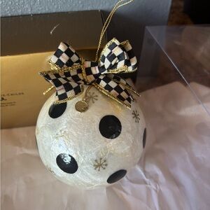 Mackenzie Childs NIB Snowflake capiz ornament with black & gold dots