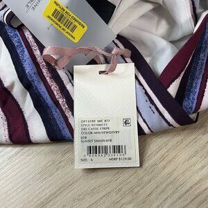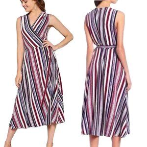Alex Marie Cassie Dress Size 6 Surplice Wrap Midi Candy Stripe Sunset Sands