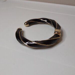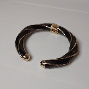 6.75 Inch Black And Gold Tone Twisted Hinged Cuff Bracelet. Check Out My Closet For Other Great Items!!! Thank You For Considering Making A Purchase.