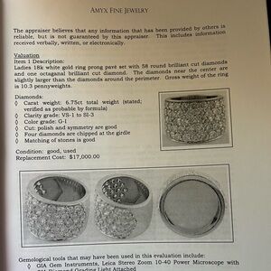 This incredible band was GIA certified in 2014. See picture of information related to grade and color of diamonds and ring imperfections. It is absolutely stunning in person. It was made by a private jeweler who reported he only made 10 of these. Its size is 7.5