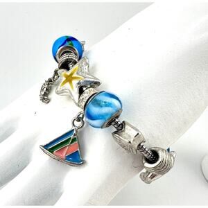 6.75” Willabee & Ward Silver Tone August Summer Vacation Beach Charm Bracelet