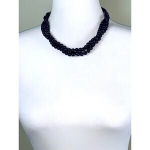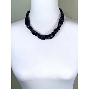 Vintage Napier Multistrand Midnight Blue Beaded Faux Pearl Statement Necklace