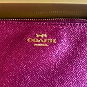 Coach Zip Wristlet. Brand new. Comes with 2 charms. Beautiful raspberry color. Boxed. Great gift idea.