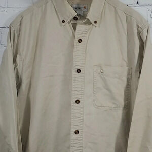 Carhartt Beige Long Sleeve Button Up Shirt Size M