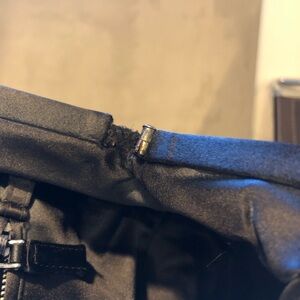 One side of metal top frame is disattached (please see pictures). Doesn’t affect closing and opening, bag is secure. Lightest rubbing on top.