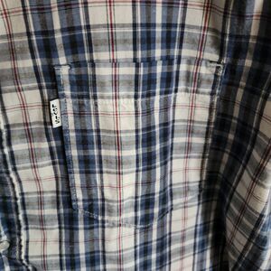 Levi's Pearl Snap Shirt Long Sleeve Blue White Red Plaid Modern Fit Mens XL