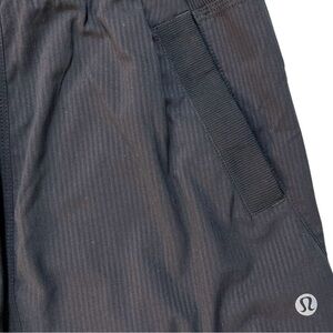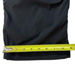 Pants appear solid black but do have an extremely subtle stripe pattern that only is visible when looking closely.