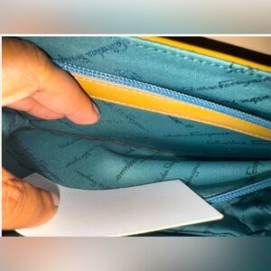The signature Ferragamo fabric adds a touch of luxury, perfect for both casual outings and sophisticated events. Whether you're heading to a brunch or an evening gala, this bag is your ideal companion. Preloved with transfer, it carries a unique charm and story.