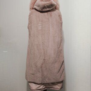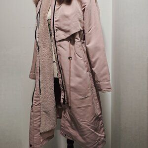New FAUX Rex Rabbit Lapin Fur-Lined Parka Coat Jacket No Mink Fox Raccoon Pink M