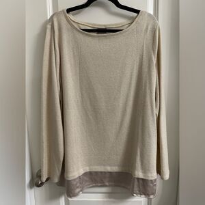 Chico’s Pintuck Dolman Sleeve Shirt Size 2.5 US 14 Neck Button Cap Sleeve Navy
