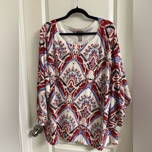 Chico’s Pintuck Dolman Sleeve Shirt Size 2.5 US 14 Cap Sleeve Neck Button Navy