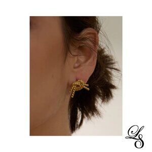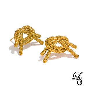 🪢New 18K Gold Textured Hollow Rope Knot Stud Earrings 🪢