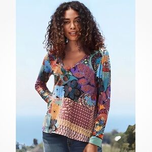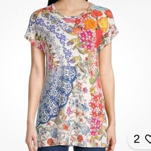 J.JILL Floral Embroidered 100% linen White Button-Up Shirt