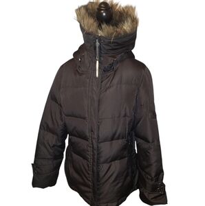 Calvin Klein coat with faux fur at hood. (not detachable)
