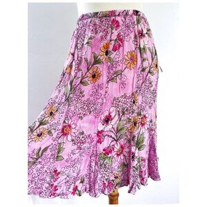 New Bila of California smocked midi pink skirt. Featuring a fun and colorful floral pattern, lightweight twirly a-line silhouette and elastic waist. Comes in size XL and made in India.