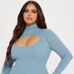 ~Allison Slate Blue Sweater Dress W/ Bolero Neckline, Front Cutout & Side Split~