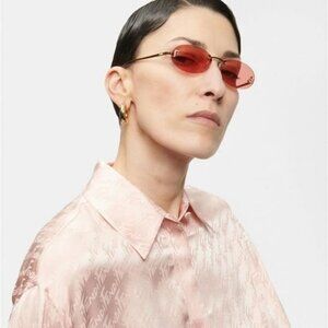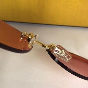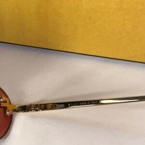 Fendi First oval sunglasses Featuring crystal F monogram logo embellishments, the Fendi First sunglasses have rimless round lenses and metal legs. They come in a protective case, the color of which may vary. · comes with cleaning cloth · comes in a case · lens filter category 2 · Frame material acetate · Lens color red · Made in Italy · Lens width 54mm - 2. 15\" · Bridge size 15mm - 0. 6\" · Earpiece length 135mm - 5. 3\" Gender Womens