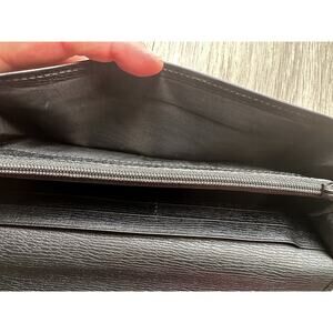 Classic Gucci long wallet. Unisex. Could work for man or woman. Silver belt buckle front. Ample space for all you need. Simple, classic style.