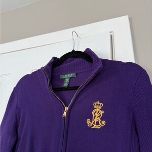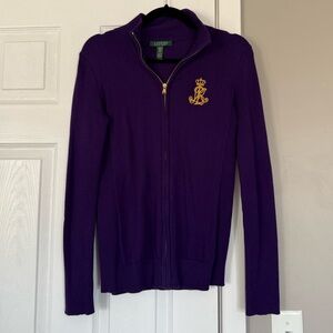 Ralph Lauren Full Zip Logo Patch Purple Sweater Preppy Academia