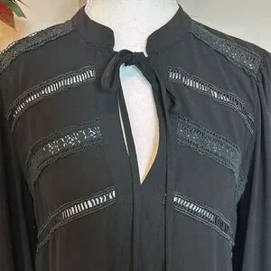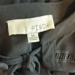 This stunning black chiffon dress from Pinch is perfect for any occasion, whether it's a party, work event, or business meeting. The dress features a V-neckline, long sleeves, and a knee-length hemline. It's a size medium and has a fit and flare style, with a collarless design and pullover closure. The dress is made of lightweight, wrinkle-resistant polyester material and is perfect for all seasons. It's a solid black color and has a bohemian, hippie, and preppy theme, making it suitable for a variety of occasions. The dress is easy to care for and should be hand washed only. Get ready to turn heads in this beautiful, comfortable dress from Pinch.