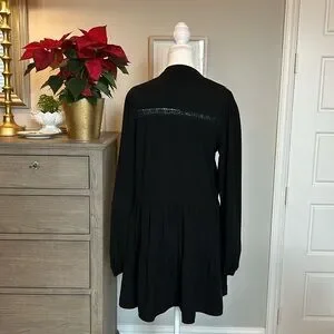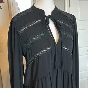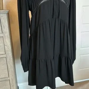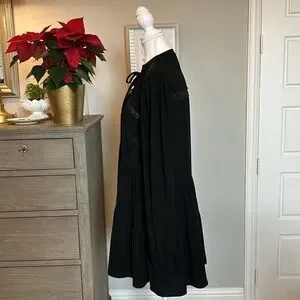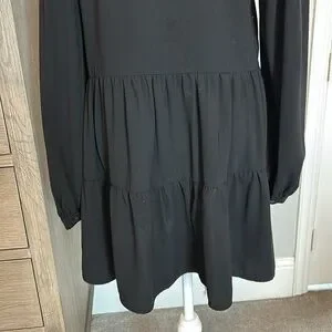 PINCH | Black Chiffon Tiered Long-Sleeve Dress | Medium