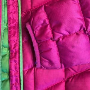 Stay warm and stylish with the Marmot Women's Pink Jacket with bright green liner. Perfect for outdoor adventures and everyday wear. Fill is goose down.
