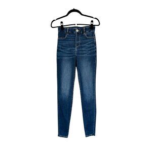 American Eagle Curvy Indigo Wash High Rise Four Pocket Styling Light Distressing Pocket Edges Next Level Stretch Jegging Denim Size 2 Long - Excellent condition.