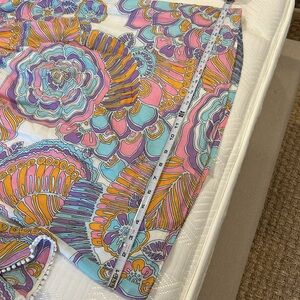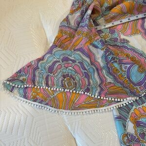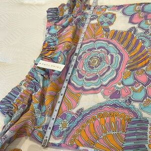 New with tags , Trina Turk blouse, 100% cotton , is also fully lined, nice wide elas band across the shoulders. Beautiful Pom Pom detail on the sleeves
