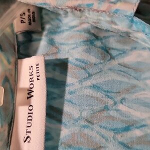 Studio Works turquoise, tan, and white blouse
