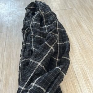 Black plaid. Excellent condition. Approx 80” long by 40” wode when fully opened. Unisex