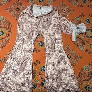 SHEIN XL flare pants with matching crop top, with beautiful sun and moon pattern! Fabric is stretchy, soft. Pants worn once, top new with tags!