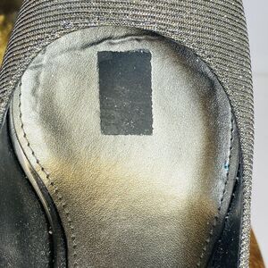 Bandolino Womens BDTufflove Wedge Heel Metallic Silver Sparkle Peep Toe Sz 8.5M