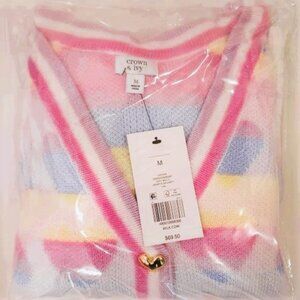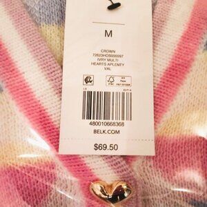 Crown & Ivy Ivory Multi Hearts Aplenty Cropped Gold Button Cardigan Size M NWT