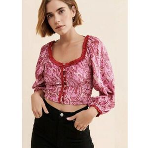 Free People Dare Me Velvet Cropped Blouse Pink Size XS