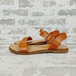 NEW Free People Saturday Brown Leather Embroidered Two Strap Flat Sandals K95