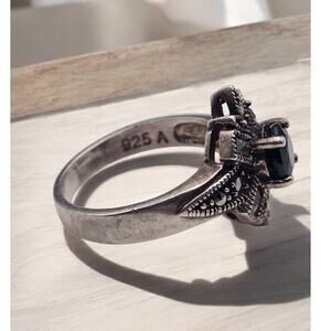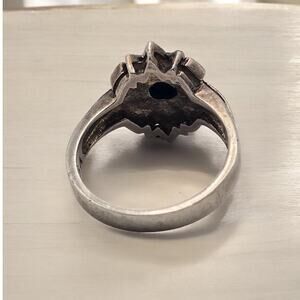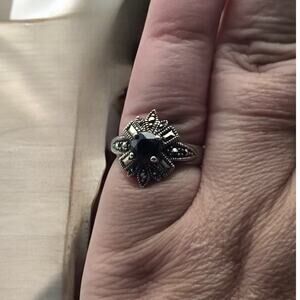 Onyx and Marcasite Vintage Sterling Silver 925 Ring Size 8