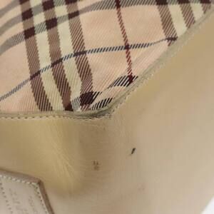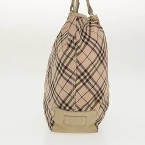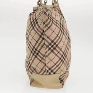 BURBERRY Nova Check Blue Label Tote Bag Nylon Beige Silver Auth 96792