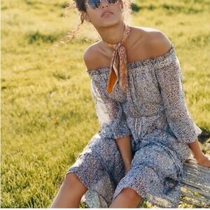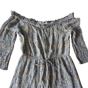 The epitome of bohemian style, this off-the-shoulder peasant dress boasts gently puffed sleeves, delicately ruffled tiers, and just a touch of shine for a dreamy ensemble you want to wear now (and always).