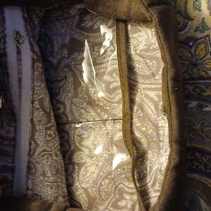 Silvertone hardware snap closure. Paisley interior