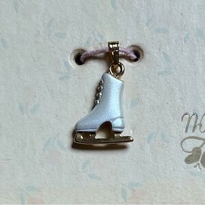 Figure / ice skate ladies or girls charm, white and gold in color, never worn. Can’t see any stamp or markings to indicate what it’s made of or by whom.