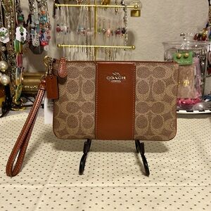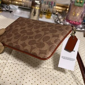 NWT COACH Coated canvas large size wristlet. Signature logo print, contrast stripe, trim & strap.