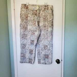 Orvis Women's 100% Cotton Patchwork Cropped Pants Size 16 Drawstring Waist