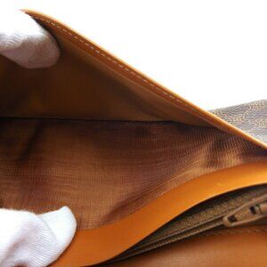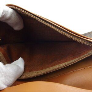 CELINE Long Wallet Macadam Beige PVC ?~ Leather Authentic Used