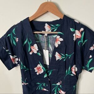 Moon River Revolve Lulu’s Brisa Navy Floral Linen Button Up Dress NWT Size Small